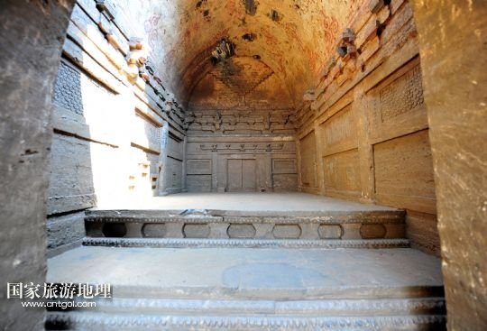 國家旅游地理 湖北襄陽8月7日訊 8月7日拍攝的湖北谷城縣肖家營仿木磚雕壁畫墓。當(dāng)日,湖北省襄陽市谷城縣肖家營北宋仿木磚雕壁畫墓內(nèi)部清理完畢,考古專家認(rèn)定墓中的宋代仿木磚雕、壁畫是湖北至今發(fā)掘的同時(shí)代古墓中保存最為完好的。