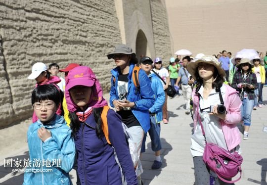 國(guó)家旅游地理 甘肅酒泉8月10日訊 8月10日,游客在嘉峪關(guān)城門前參觀。近一個(gè)月來(lái),我國(guó)許多地區(qū)持續(xù)高溫天氣,西北地區(qū)成為眾多游客逃離酷暑、納涼觀光的好去處。據(jù)了解,目前甘肅省內(nèi)各大旅行社絲綢之路旅游線路預(yù)訂火爆。敦煌莫高窟、嘉峪關(guān)等多個(gè)景區(qū)游客爆滿,賓館甚至出現(xiàn)一房難求的現(xiàn)象,旅游部門提醒有出游需求的游客盡量提早預(yù)訂,保證順利出游。 /新華社記者 陳斌 攝