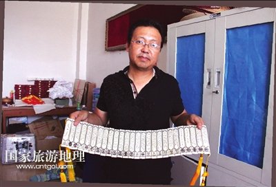 說(shuō)起他們引以為傲的骨雕作品時(shí),哈斯達(dá)來(lái)老師告訴記者,那就是經(jīng)過(guò)40多人花費(fèi)4個(gè)多月時(shí)間純手工雕刻,于2008年8月完成的《蒙古秘史》。為了完成這件藝術(shù)作品,他們從3000多頭牛中挑選出6000塊牛大骨(每頭牛只有2塊牛大骨),再?gòu)闹羞x出同樣尺寸的4000多塊牛大骨,然后經(jīng)過(guò)消毒、打磨,選用了其中的1400塊進(jìn)行雕刻。骨雕作品《蒙古秘史》共12章282節(jié),長(zhǎng)32米,寬15厘米,現(xiàn)陳列于內(nèi)蒙古師范大學(xué)文學(xué)館內(nèi),正在申報(bào)吉尼斯世界紀(jì)錄。哈斯達(dá)來(lái)老師希望通過(guò)此種形式,進(jìn)一步展現(xiàn)骨雕藝術(shù)的魅力。有了經(jīng)驗(yàn)以后,2009年8月,他們又完成了《蒙古秘史》的第二次雕刻,這次的作品長(zhǎng)29米,寬12.4厘米,骨頭厚度0.3厘米,現(xiàn)陳列于該校的展覽館內(nèi)。