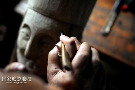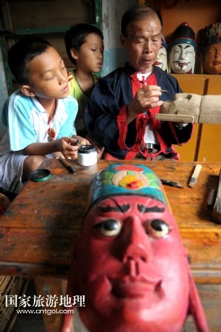 譚圣慈老人今年72歲,從22歲開(kāi)始學(xué)雕刻儺戲面具,迄今,已經(jīng)堅(jiān)持了50年。老人說(shuō),他制作的面具因工藝精湛,造型優(yōu)美,曾吸引遠(yuǎn)方的客人高價(jià)購(gòu)買(mǎi)。但是,卻少有人來(lái)學(xué)習(xí)面具的雕刻與制作。儺戲于2006年被列入非物質(zhì)文化遺產(chǎn)名錄之后,政府加大了保護(hù)力度,但因?yàn)槊婢叩闹谱髦芷陂L(zhǎng)、工序復(fù)雜,銷(xiāo)售渠道少等原因,仍無(wú)法吸引年輕人學(xué)習(xí)雕刻的興趣。為了收到心儀的徒弟,傳承這獨(dú)到的技藝,他到處發(fā)布免費(fèi)收學(xué)徒的信息。在他的堅(jiān)持下,今年暑期,鄉(xiāng)里有兩名對(duì)面具制作感興趣的男孩來(lái)到譚圣慈身邊學(xué)藝。老人高興地說(shuō):“我給他們講很多故事,就是希望他們能對(duì)此提起興趣,愛(ài)上木面雕刻,別讓這老手藝失傳了。” /新華社發(fā)