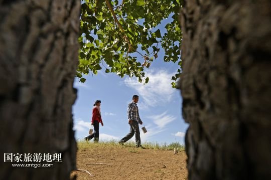 國家旅游地理 寧夏銀川10月11日訊 圖為顧蕓香(8月14日攝) 14年來,寧夏靈武農(nóng)民顧蕓香的心,不知隨著沙漠里的樹“生生死死”了多少回。