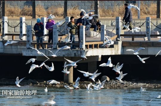 國家旅游地理 河北秦皇島1月13日訊 1月12日,一群海鷗在秦皇島市海港區(qū)新開河入海口處覓食。隨著氣溫不斷下降,在秦皇島沿海一線越冬的海鷗開始飛到市區(qū)內(nèi)的河道覓食,為冬日里的秦皇島市區(qū)增添了生機(jī)。 /新華社記者楊世堯攝