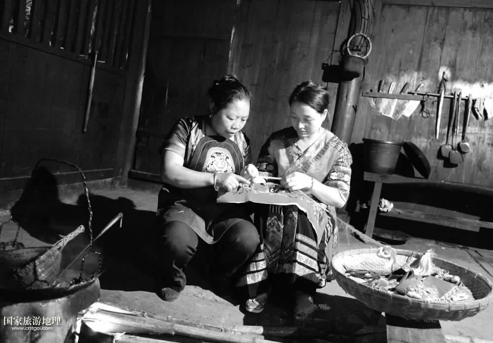 獨(dú)具風(fēng)情的地理位置并不能為苗繡的保存設(shè)防 ,在伍前金眼中 ,盡管臘里村遠(yuǎn)離都市 ,但族人已被漢化。她說:現(xiàn)在居民從來不穿苗服了 ,也不再講苗語。”