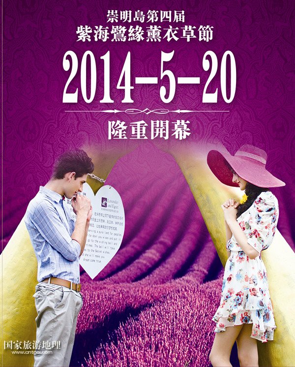 5月20日至6月20日,為期1個月的2014上海崇明島第四屆薰衣草節(jié)將在崇明島舉行,市民不用去法國普羅旺斯就可欣賞到紫色花海的美景了。此次活動地點設在中國最美麗的“花園”——上海崇明島上的香草種植園紫海鷺緣浪漫愛情主題公園內。