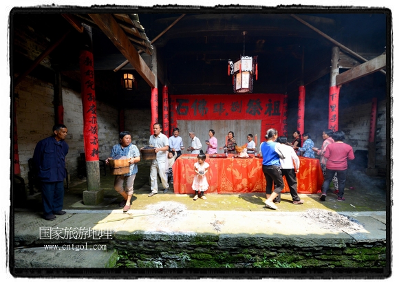 國家旅游地理 江西婺源(上饒)5月31日訊(特約記者王國紅 通訊員程新德攝影報(bào)道) “祭祀開始、鳴炮奏樂、祭拜、主持人講話、結(jié)束鳴炮”,5月25日,農(nóng)歷四月初八,石佛村烏飯節(jié),村民將自家精心制作的烏飯端進(jìn)祠堂祭祀。江西省婺源縣段莘鄉(xiāng)石佛村每年都要舉行烏飯祭祖活動(dòng),各家各戶將自家精心制作的烏飯端進(jìn)祠堂……