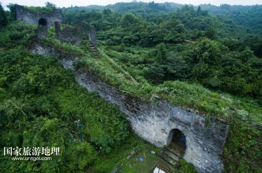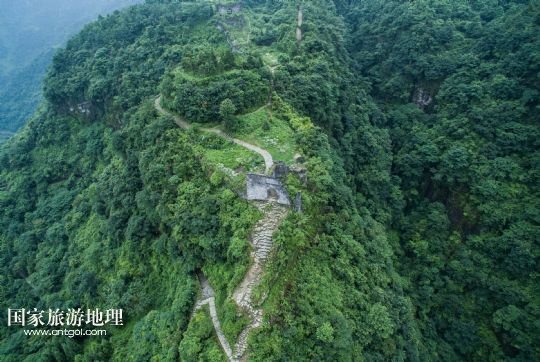 國家旅游地理 德國波恩7月4日訊 從空中看貴州播州海龍屯飛鳳關(guān)(7月3日攝)。海龍屯遺址位于遵義老城北約30里的龍巖山東麓,始建于1257年,毀于1600年。遺址所在山峰相對高度約350米,三面環(huán)水,一面銜山,地勢險(xiǎn)要,如今周長約6公里的環(huán)囤城墻尚存,囤東銅柱、鐵柱、飛虎、飛龍、朝天、飛鳳六關(guān),囤西后關(guān)、西關(guān)、萬安三關(guān)依然屹立。囤頂平闊,囤內(nèi)遺有“老王宮”和“新王宮”兩組重要建筑基址,面積均在2萬平方米左右,此外尚有金銀庫、四角亭、采石場、校場壩、環(huán)囤馬道和敵樓等遺跡。